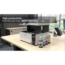 La multifuncional inalámbrica EcoTank L5590 te ofrece rendimiento y eficiencia con la revolucionaria impresión sin cartuchos con productividad para tu negocio en casa. Ahora con tanque frontal y nuevo sistema de llenado codificado EcoFitTM, automático, limpio y sin errores. Con gran ahorro en costos de impresión vs. cartuchos, la EcoTank® L5590 te permite imprimir hasta 7.500 páginas a color2 o 4.500 páginas en negro2 con gran calidad y alta velocidad†. Imprime cientos de proyectos sin interrupciones, con los juegos de botellas de tinta original Epson que equivalen a unos 35 juegos de cartuchos de tinta3, ahorrando hasta 90% en tinta con las botellas de reemplazo de bajo costo