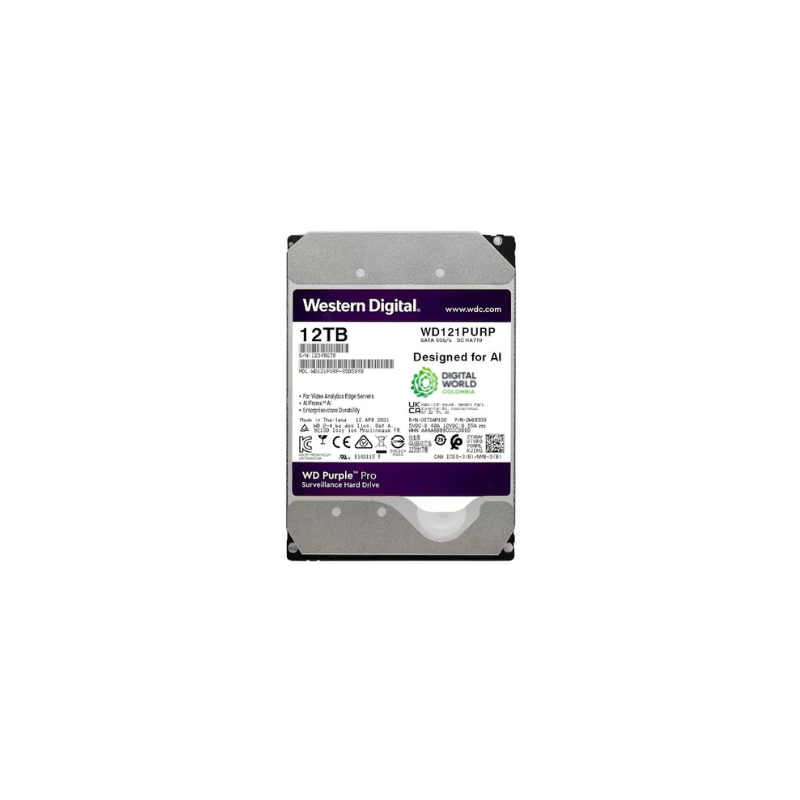 WD Purple (Estándar): Está optimizado para sistemas de vigilancia con hasta 64 cámaras HD y es ideal para DVR/NVRs de hasta 8 bahías. Su firmware AllFrame™ mejora la transmisión ATA y reduce la pérdida de fotogramas. Tiene una carga de trabajo anualizada de 180 TB/año y un MTBF (Tiempo medio entre fallos) de 1 millón de horas.