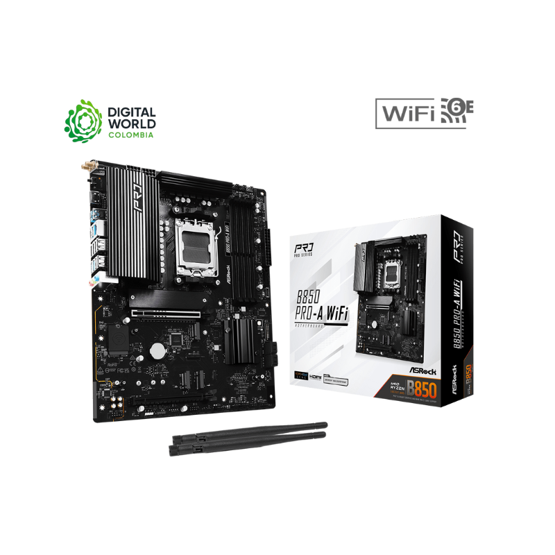 La ASRock B850 Pro-A WiFi es una placa base diseñada para la plataforma AM5, pensada para entusiastas que buscan estabilidad, rendimiento y gran capacidad de expansión para procesadores AMD Ryzen™ serie 7000. Su construcción robusta, sistema de alimentación reforzado y compatibilidad con memoria DDR5 de alta velocidad permiten aprovechar al máximo los procesadores de nueva generación. Incluye conectividad avanzada como WiFi integrado, PCIe de última generación, múltiples puertos M.2 y un diseño térmico optimizado para mantener temperaturas controladas incluso en cargas intensas.