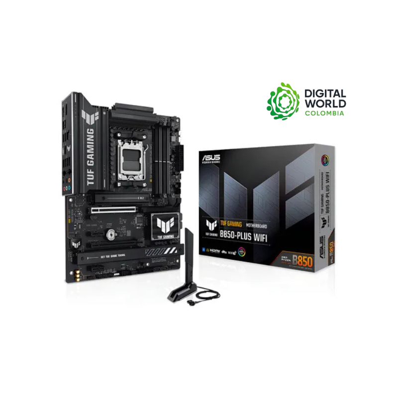 La ASUS TUF Gaming B850‑PLUS WiFi es una placa madre de formato ATX con socket AM5, enfocada al rendimiento estable y duradero, ideal tanto para gaming como para estaciones de trabajo. Usa el chipset B850, compatible con procesadores AMD Ryzen de las series 7000, 8000 y 9000. Integra un diseño de alimentación robusto con 14 + 2 + 1 fases, lo que garantiza una entrega de energía sólida bajo cargas exigentes.