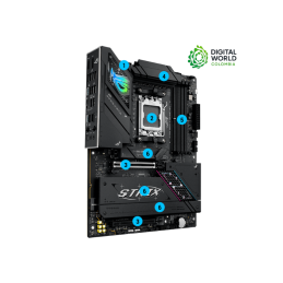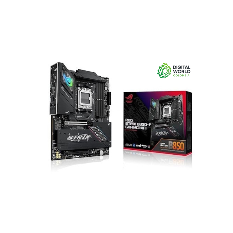 La ASUS ROG STRIX B850‑F GAMING WiFi es una placa madre ATX con socket AM5, diseñada para procesadores AMD Ryzen de las series 7000, 8000 y 9000. Su chipset es el B850, que da soporte a tecnologías modernas como PCIe 5.0 y memoria DDR5 con perfiles de overclock (EXPO™) y optimización de memoria (AEMP).