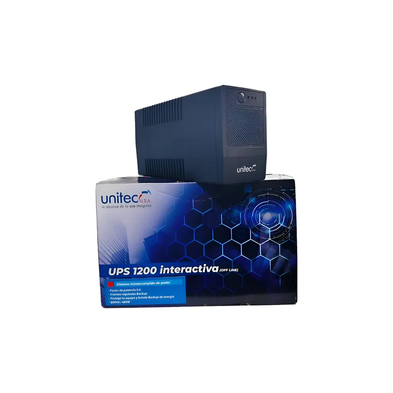 El UPS interactivo Ups Unitec Interactiva 1200 JNP‑U1200 800VA 480W es una unidad de alimentación ininterrumpida (UPS) de tecnología interactiva pensada para proteger equipos electrónicos como computadores personales, routers/modems, impresoras o dispositivos de oficina y hogar frente a apagones, picos o caídas de tensión en la red eléctrica.