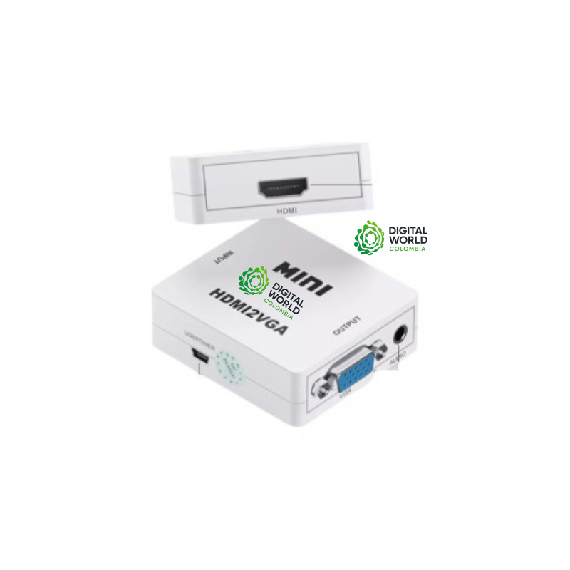 Convertidor de señal de video que transforma la salida digital HDMI en señal analógica VGA, permitiendo conectar dispositivos modernos (laptops, PCs, consolas, reproductores multimedia) con salida HDMI a monitores, proyectores o pantallas que solo tienen entrada VGA. Ideal para facilitar la compatibilidad entre tecnologías antiguas y nuevas sin pérdida notable de calidad visual.