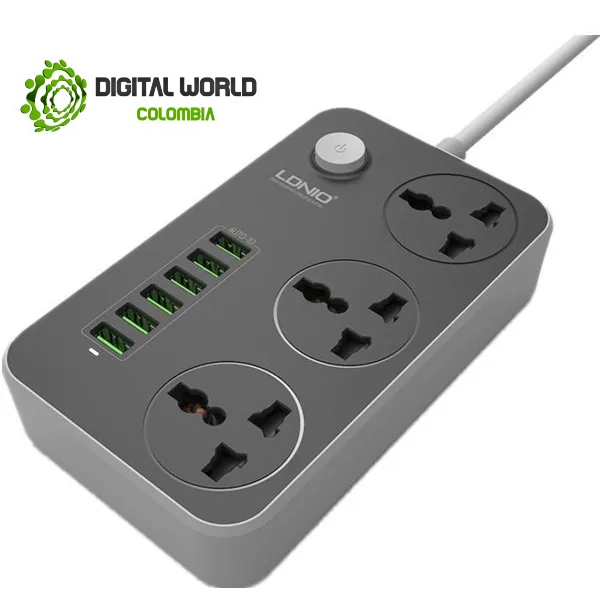 La multitoma LDNIO SC3604 es una regleta de corriente versátil que combina 3 tomas eléctricas universales con 6 puertos USB de carga inteligente, lo que te permite conectar múltiples dispositivos a la vez sin necesidad de adaptadores adicionales.