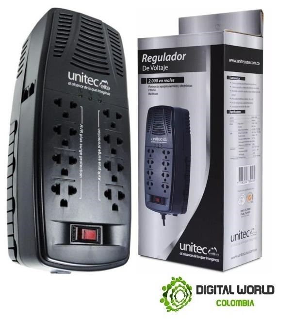 El regulador de voltaje Unitec 2000 VA / 1000 W es un dispositivo diseñado para proteger tus equipos electrónicos de las fluctuaciones de la red eléctrica, como caídas o subidas de voltaje, picos de tensión o variaciones frecuentes, estabilizando la energía antes de que llegue a tus dispositivos.