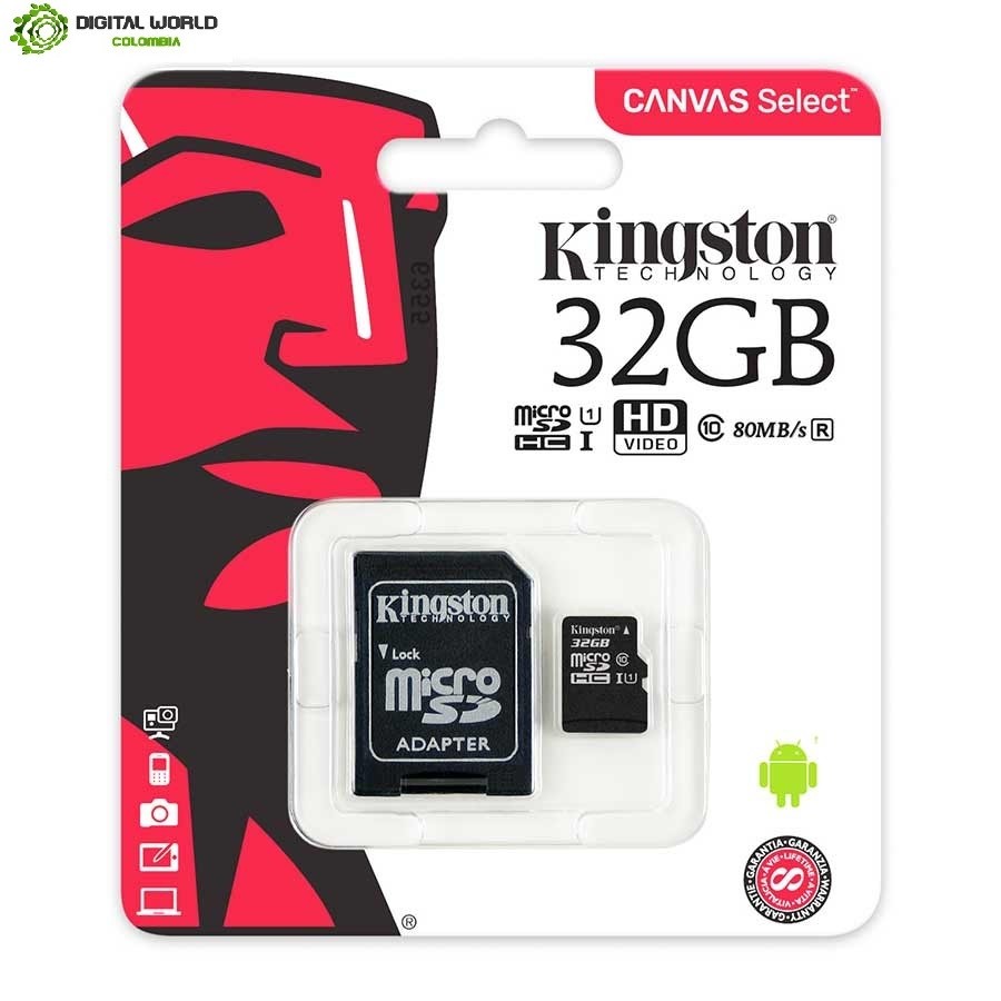 Micro SD Kingston 32GB-80MB/s- Clase 10