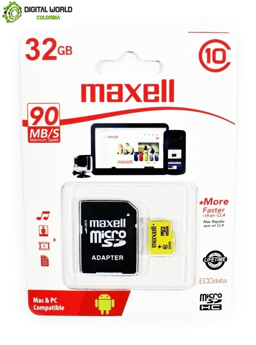 La MicroSD Maxell 32GB Clase 10 – 90 MB/s es una tarjeta de memoria diseñada para ampliar de forma eficiente y segura el almacenamiento de tus dispositivos. Con 32 GB de capacidad, ofrece espacio amplio para fotos, videos, música, documentos y aplicaciones sin complicaciones.