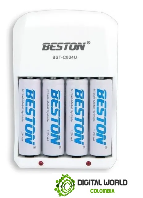 El cargador de pilas BESTON BST-C804U es un cargador versátil y eficiente diseñado para recargar baterías AA y AAA recargables, ofreciendo la posibilidad de cargar hasta 4 pilas al mismo tiempo con indicación LED del estado de carga.