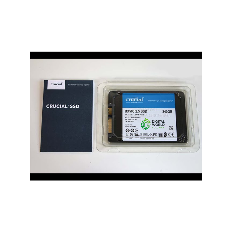 Disco Sólido (SSD) Crucial BX500 de 240GB, con interfaz SATA III (6 Gb/s). Este SSD ofrece un rendimiento mejorado en lectura y escritura para optimizar el arranque del sistema, la carga de aplicaciones y la transferencia de archivos. Es ideal para actualizar laptops y PCs de escritorio, brindando una solución confiable y duradera con tecnología de ahorro energético.